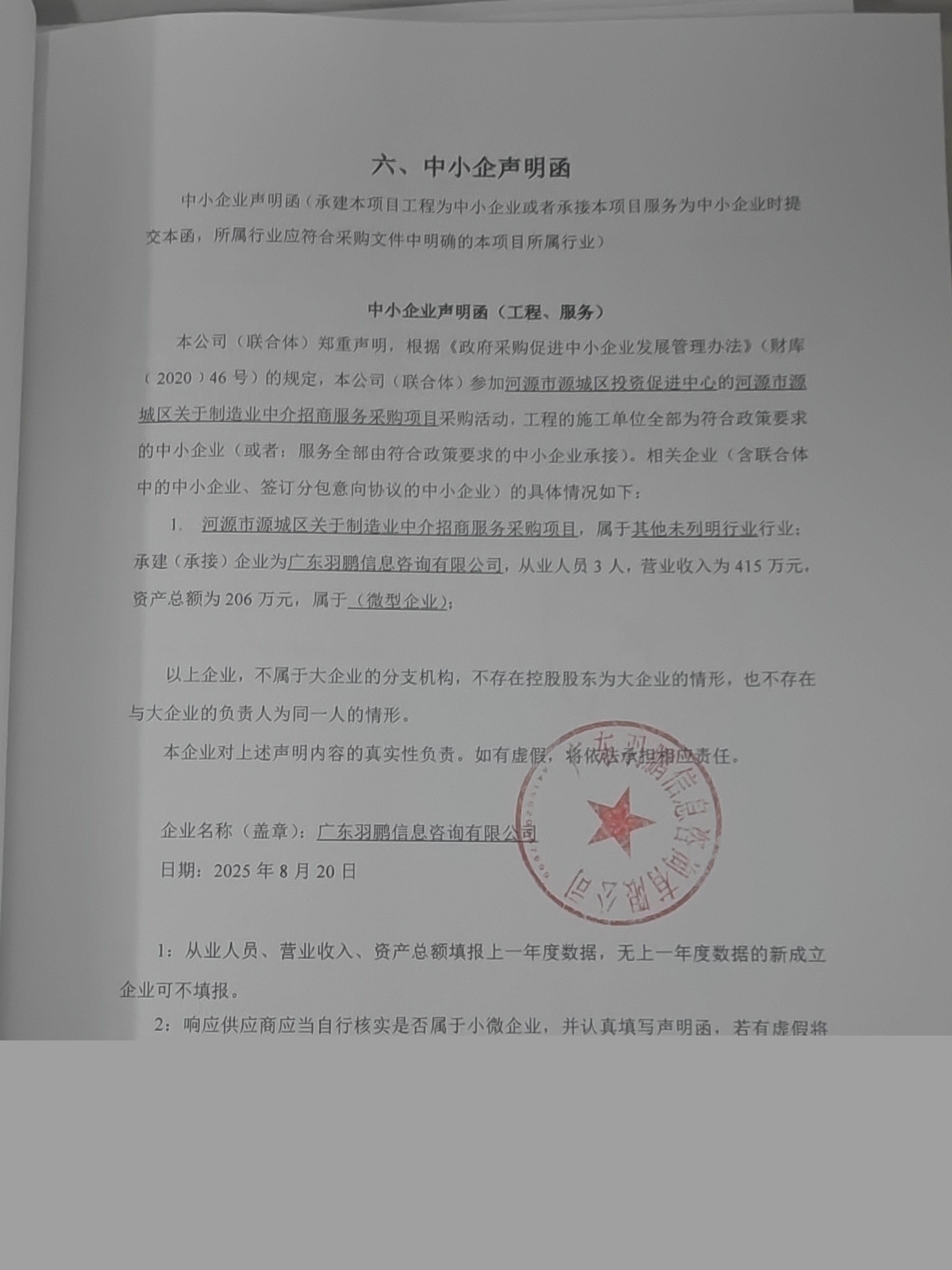 二、項目名稱:河源市源城區(qū)關于制造業(yè)中介招商服務采購項目